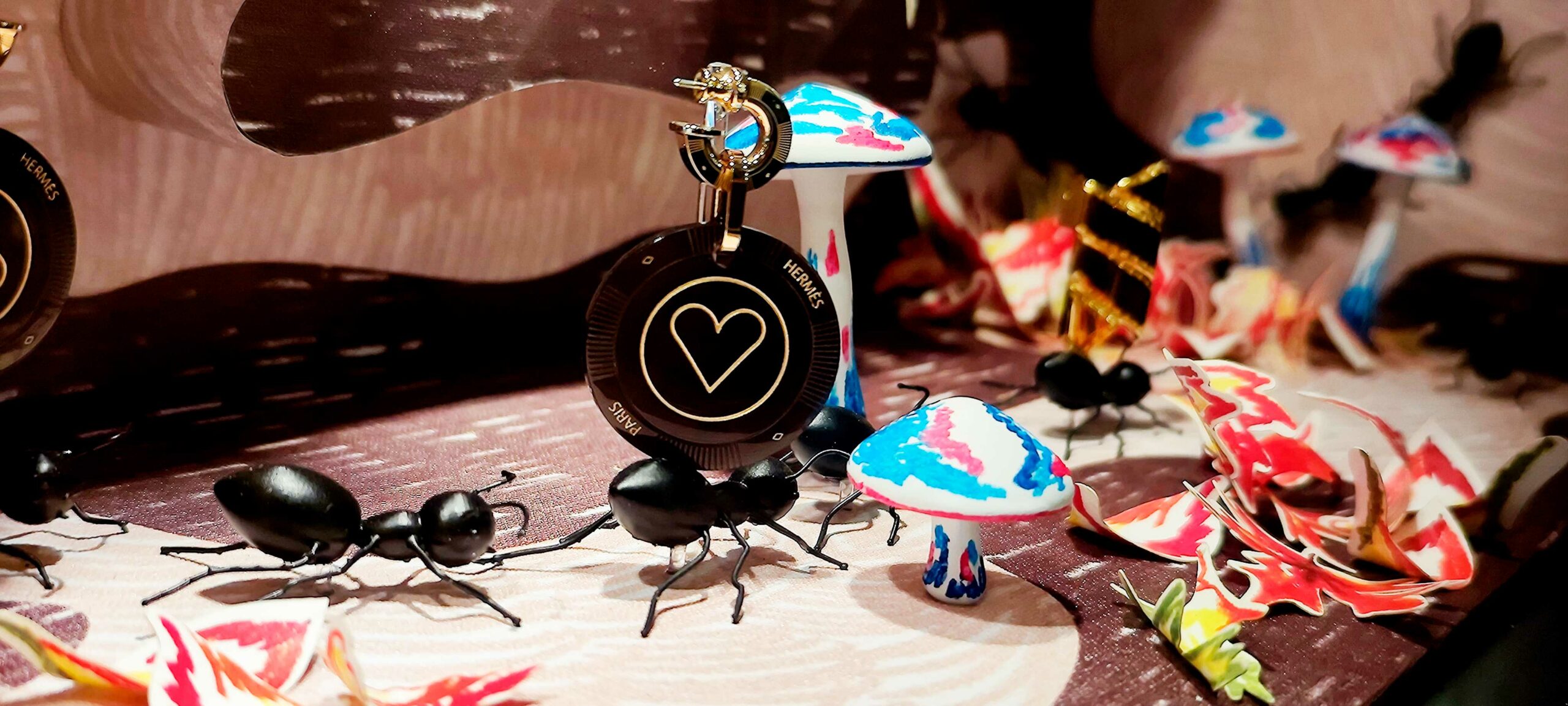 The depth achieved thanks to the installation of different layers and shapes turned the shop window into a stage where the wooden animals, created in 3D, shone in their own light.