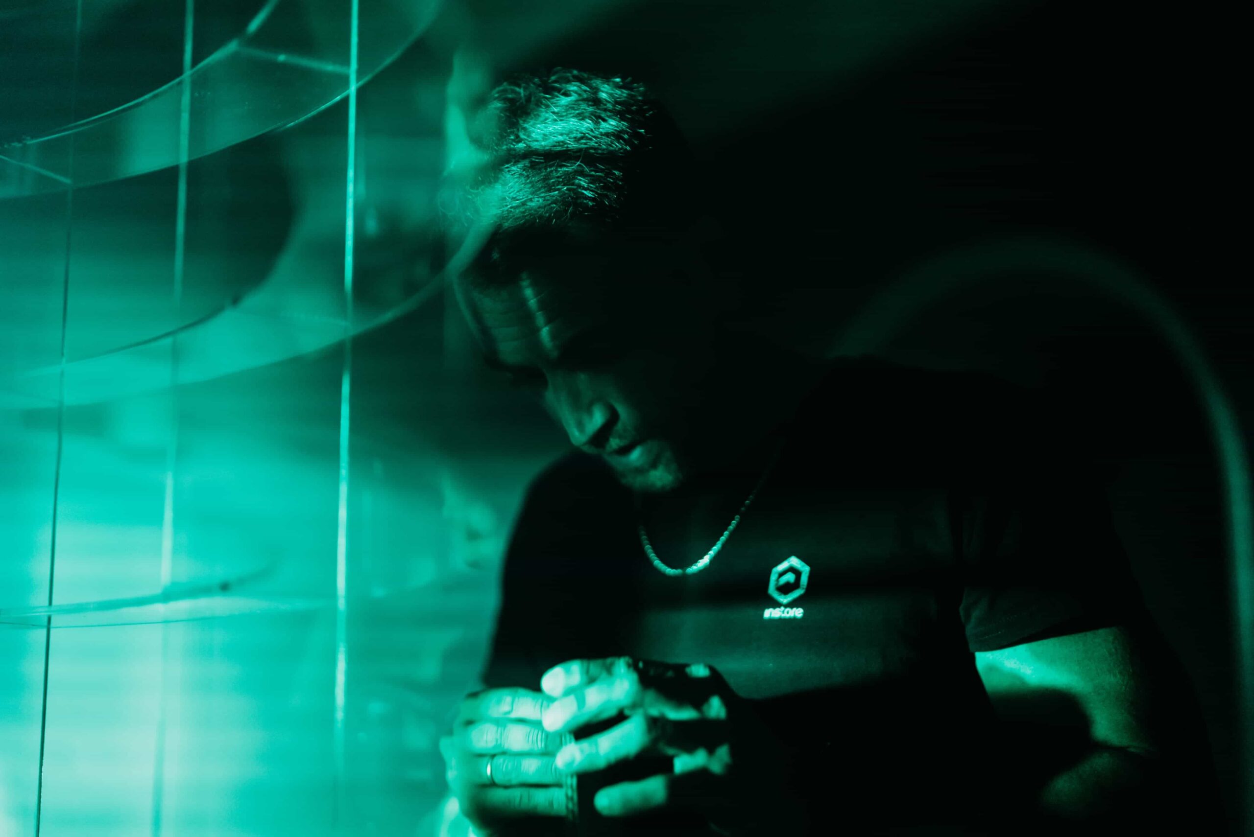 The materials were carefully selected: from dark grey laminated wood, curved lacquered panels, metal, acrylic, and mirror-effect vinyl, all of which were manufactured using CNC and laser machinery to achieve perfect finishes consistent with the original design. The production included dimmable illuminated signage, an acrylic tower, a spotlight platform, and a DJ booth, as well as the final graphics and paintwork.